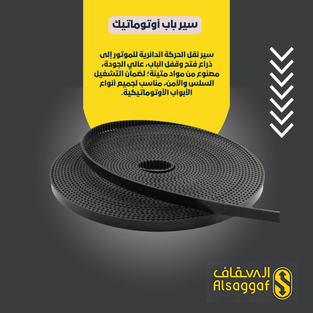 سير باب أوتوماتيك بالمتر، سير نقل الحركة الدائرية للموتور إلى ذراع فتح وقفل الباب، عالي الجودة، مصنوع من مواد متينة؛ لضمان التشغيل السلس والآمن، مناسب لجميع أنواع الأبواب الأوتوماتيكية.