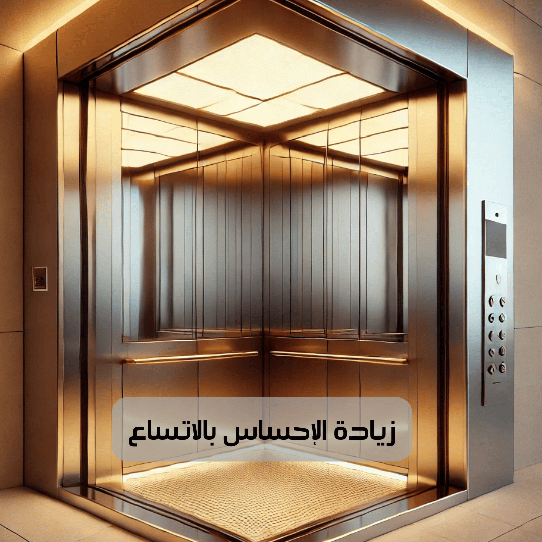 المصاعد قد تكون في بعض الأحيان أماكن ضيقة، مما قد يسبب الشعور بالاختناق أو الانزعاج خاصة عندما يتواجد فيها عدد من الأشخاص، وهنا يأتي دور المرآة في توفير إحساس بالمساحة، عندما يرى الشخص نفسه منعكسًا في المرآة، فإن ذلك يُضفي شعورًا بالاتساع ويقلل من شعور الازدحام، إن وجود مرآة يمكن أن يجعل المساحة تبدو أكبر مما هي عليه في الواقع، مما يساعد على تقليل الإحساس بالضيق داخل المصعد.