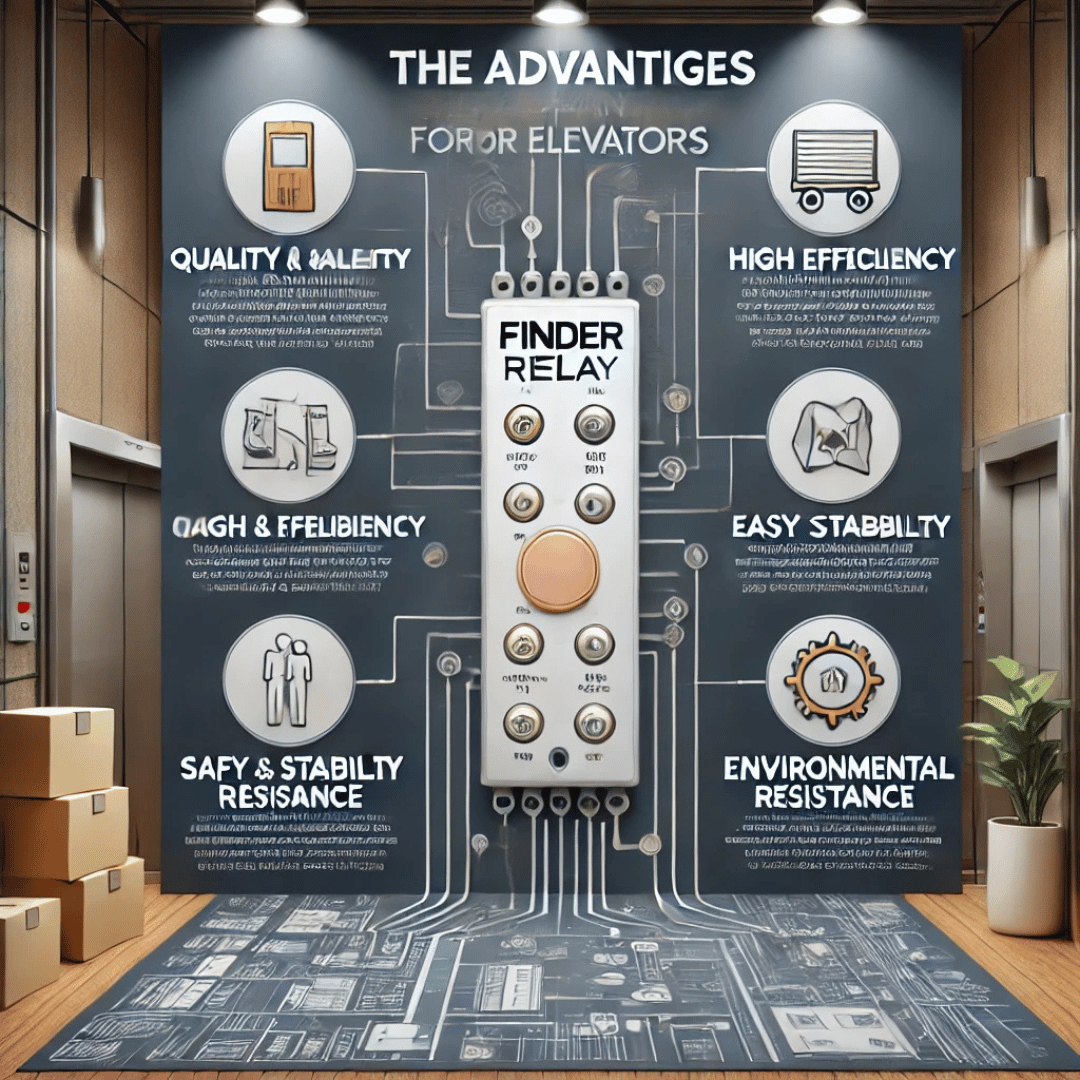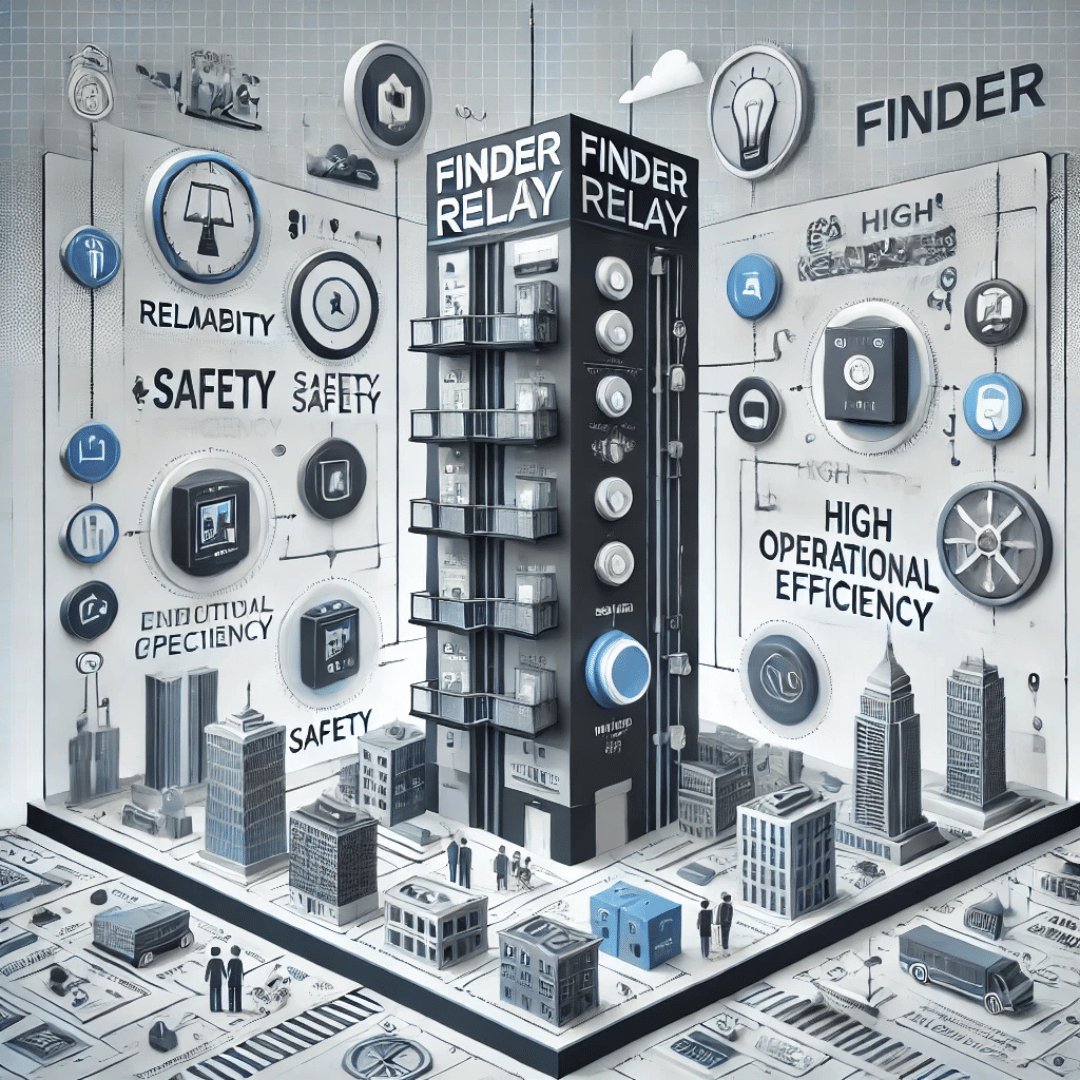 ريليه فيندر (Finder Relay) هو أحد الأجهزة الكهربائية المهمة التي تستخدم للتحكم في تشغيل وإيقاف الدوائر الكهربائية في المصاعد، يعتبر هذا الريليه من المنتجات عالية الجودة التي تصنعها شركة Finder الإيطالية، وهي شركة متخصصة في تصنيع الريليهات، المؤقتات، والمكونات الكهربائية الأخرى.