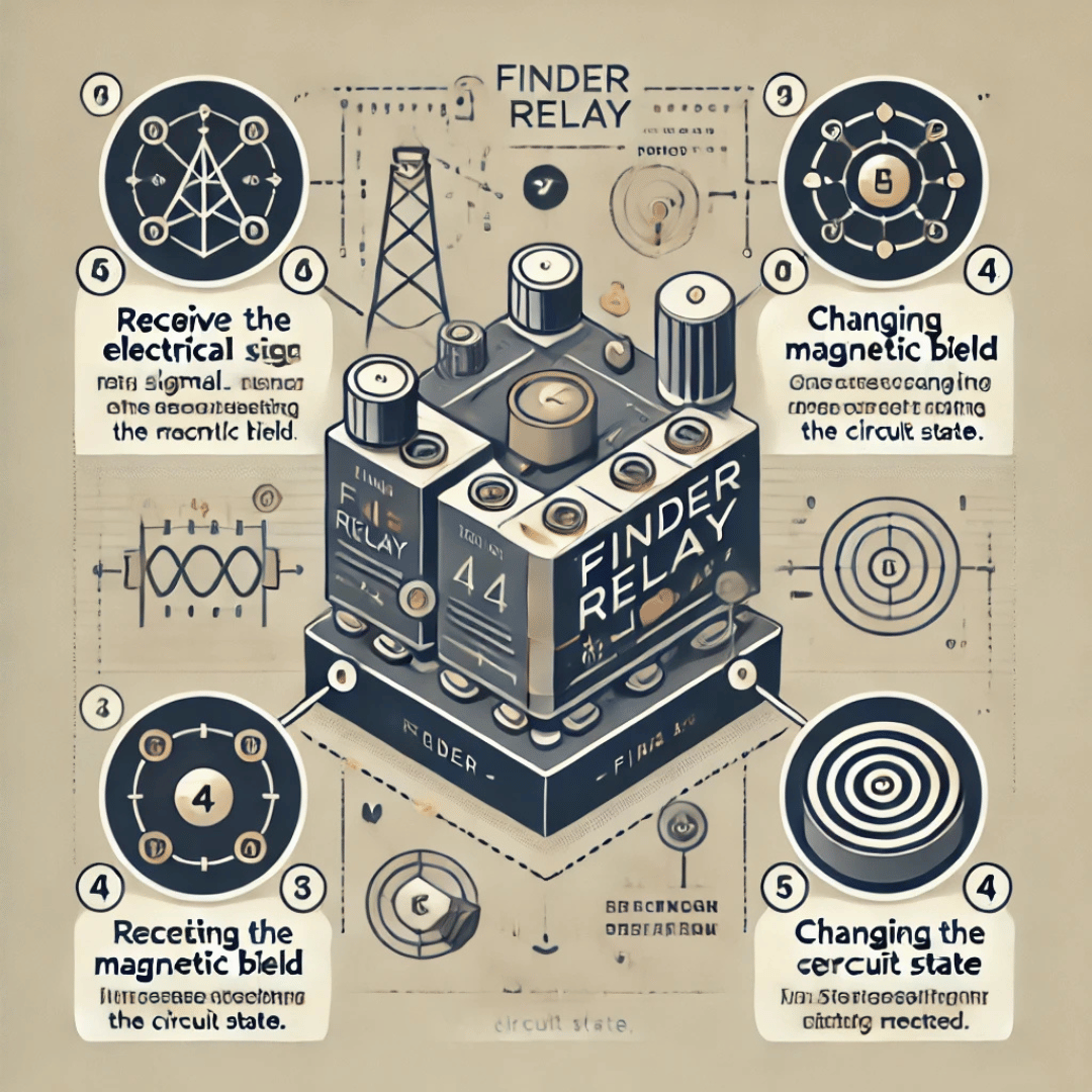 يعتمد ريليه فيندر على مبدأ الكهرومغناطيسية في تشغيله، ويمكن تلخيص آلية عمله في الخطوات التالية: